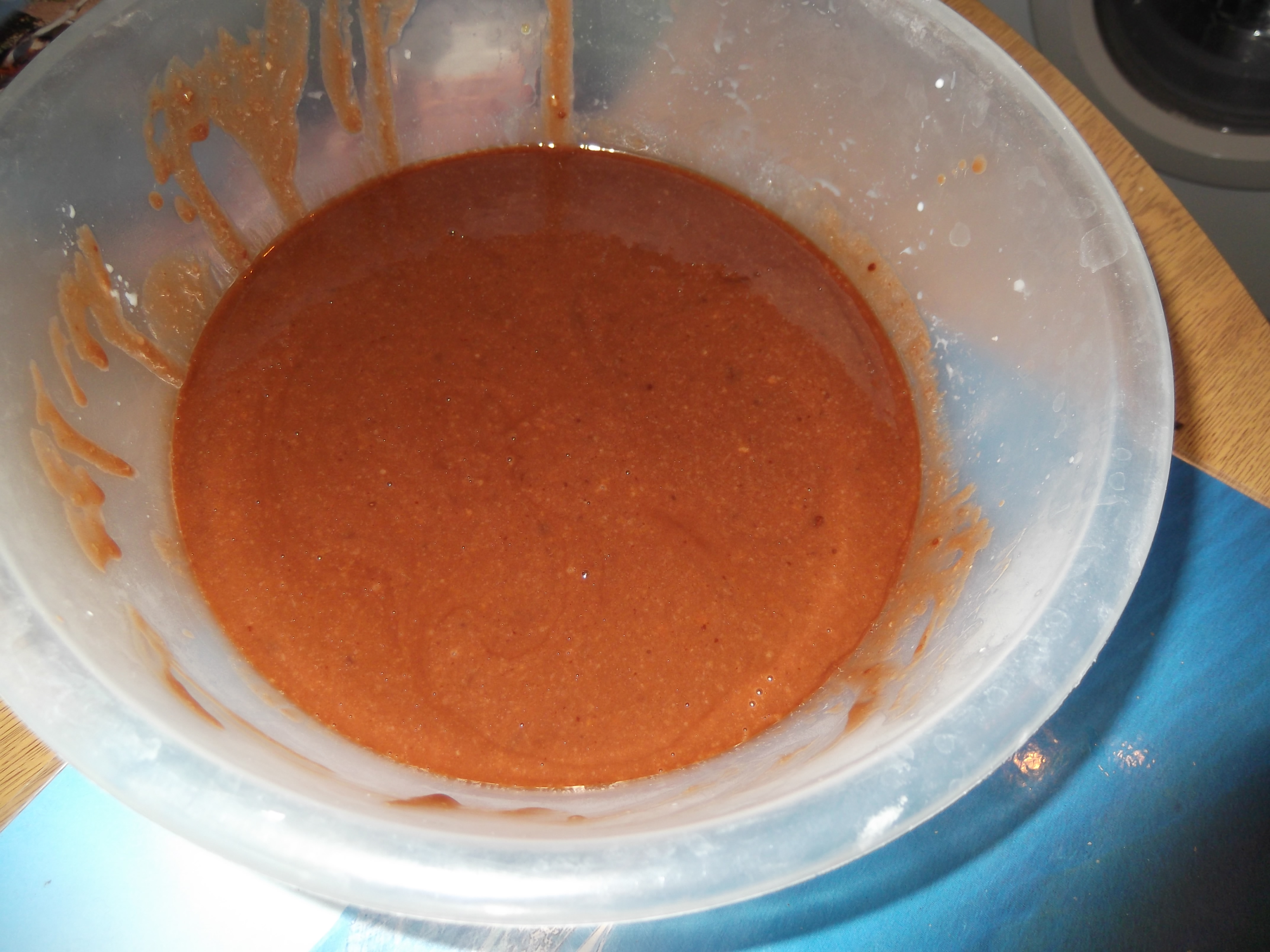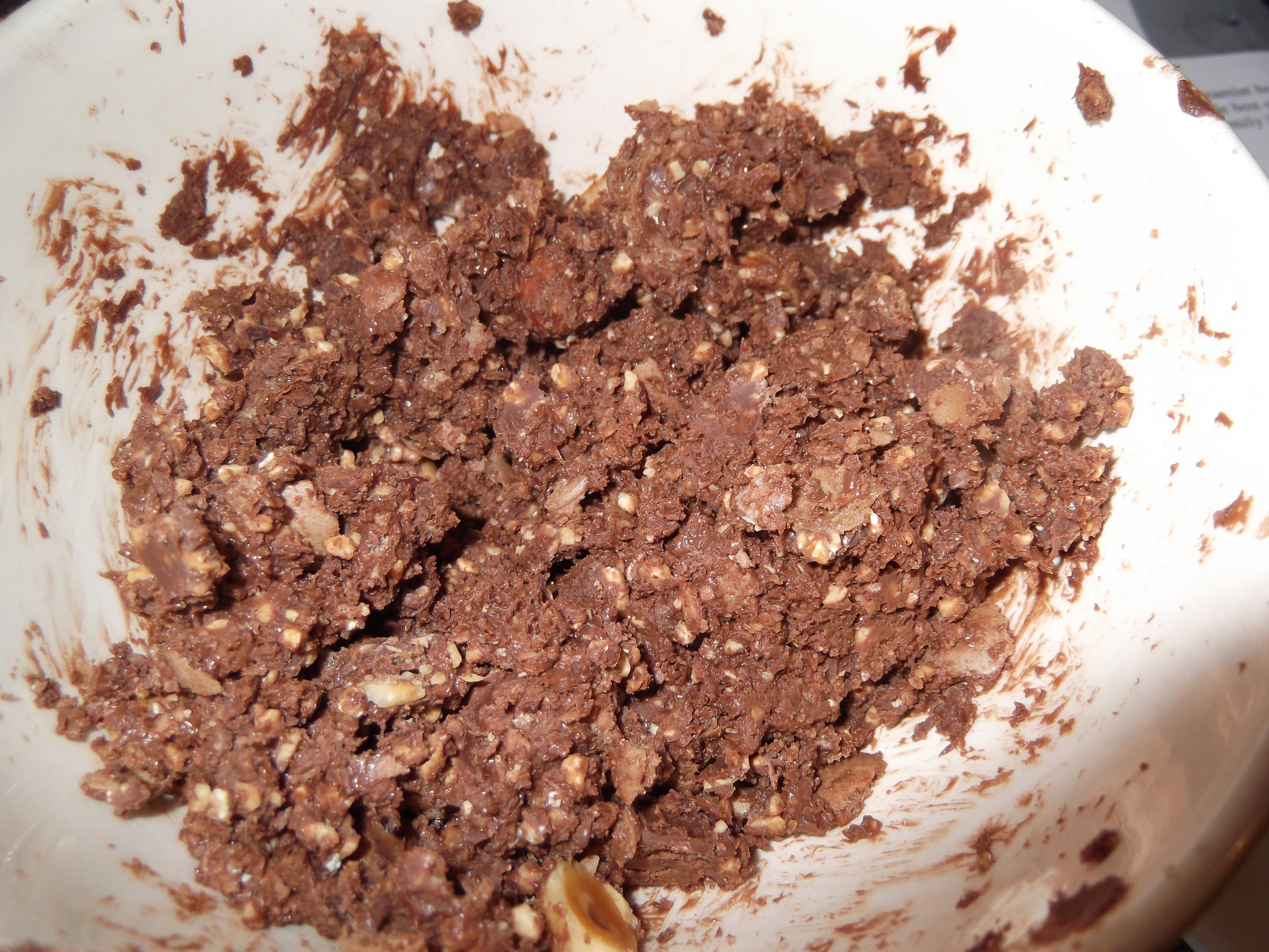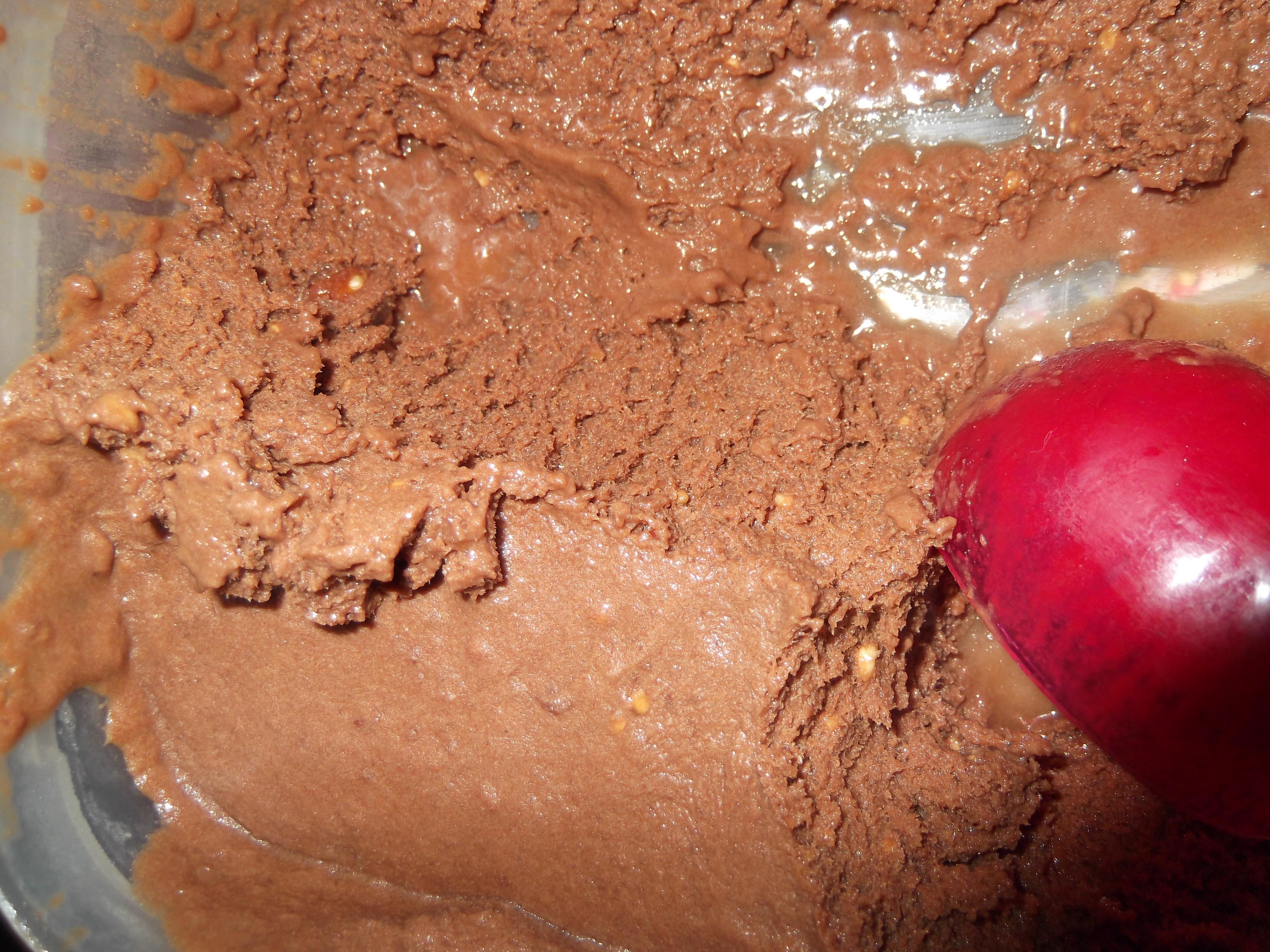 Add the Nutella and mix for a long time until there’s no more Nutella globs left in the mixture.