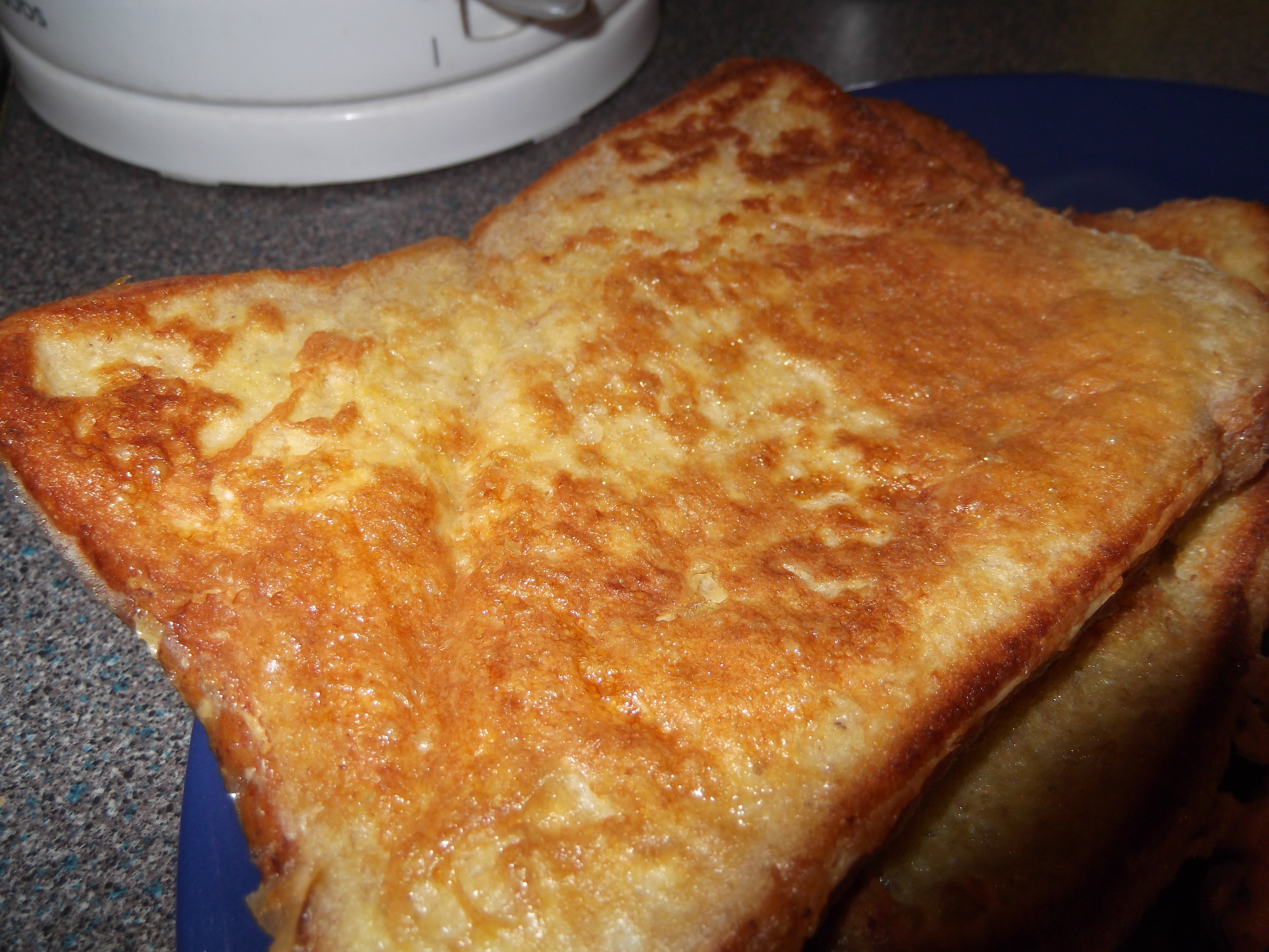 four slices of toast (any toast will do, but white soaks up better while 50/50 or brown toast fills you up so fast you won’t be able to finish
