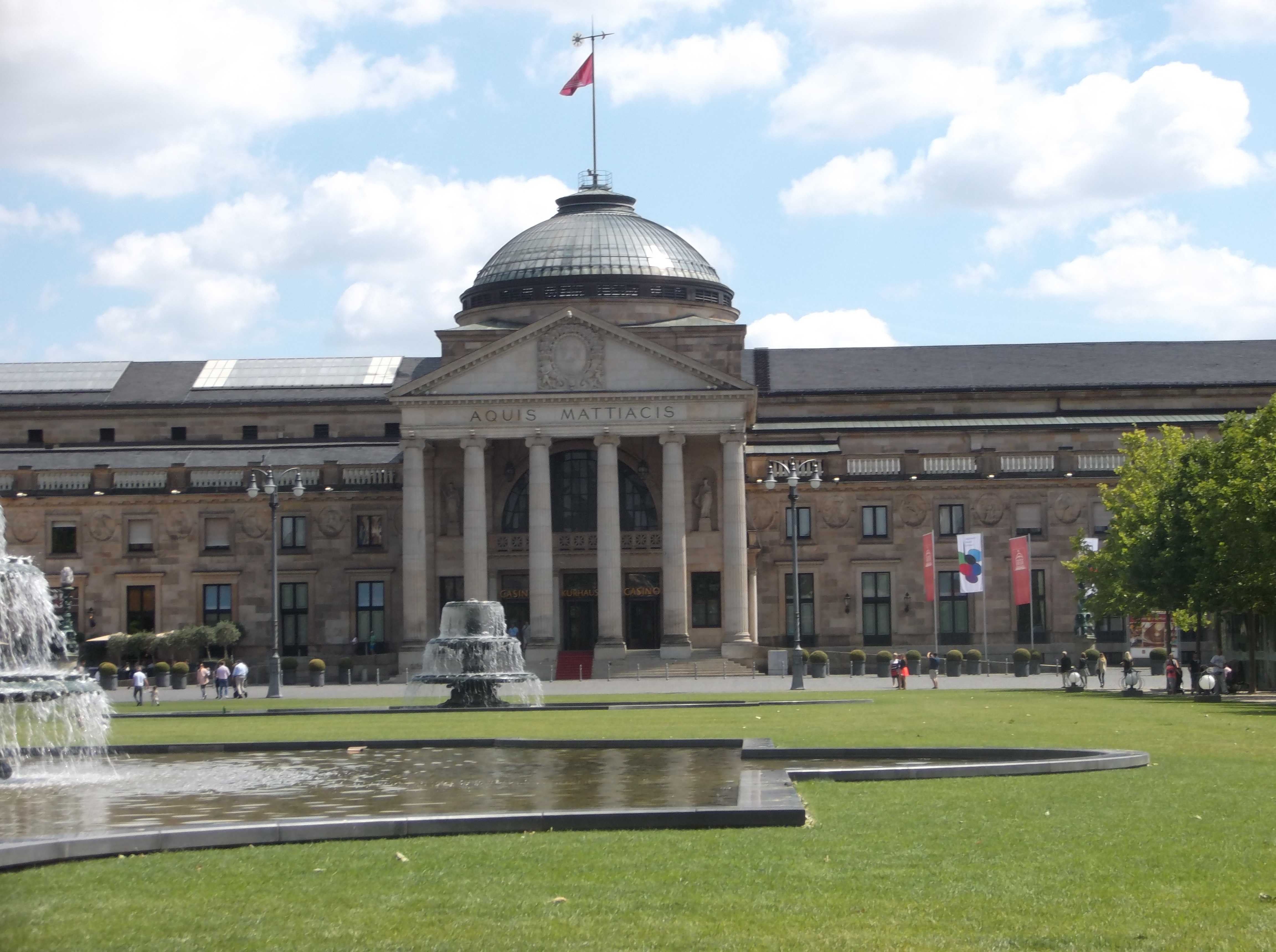 Now, I’ve known Wiesbaden all my life, but it’s been years since I came in the summer. At Christmastime it’s always grey and wet, the market square is taken over by the Christmas market and there’s so many shoppers in the street you can’t see the cobblestones. This time there were foreign tourists, the streets were reasonably empty and I could take pictures without wooden huts in the way. Or shopping bags.
