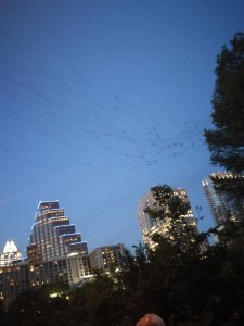 After that, we left Fredericksburg and went onward to Austin, where Dan had a conference and I could sightsee. The first thing we did was have some Freebird’s, which is hand down, the best Burrito ever. Chew on that Chipotle! Their lime and cilantro rice is so much more fragrant, and they’re just superior. After that we went to the nearby Congress Avenue Bridge where, I kid you not, bats fly out every night from April to September. Bats. Hundreds of bats. It’s AWESOME. Try to go several times, as we had more luck on the second try. And by that I mean we say 5000 bats instead of 2000. But it’s worth it.